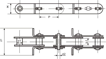 鏈條 1、 類型:套筒滾子鏈。 2、 材質:碳鋼、錳鋼。 3、 可以定制其它形式及規格的鏈條。 4、 GLR—安裝U型塑料刮板的鏈條,GLF—安裝塑料埋刮板的鏈條,GL—金屬刮板鏈。